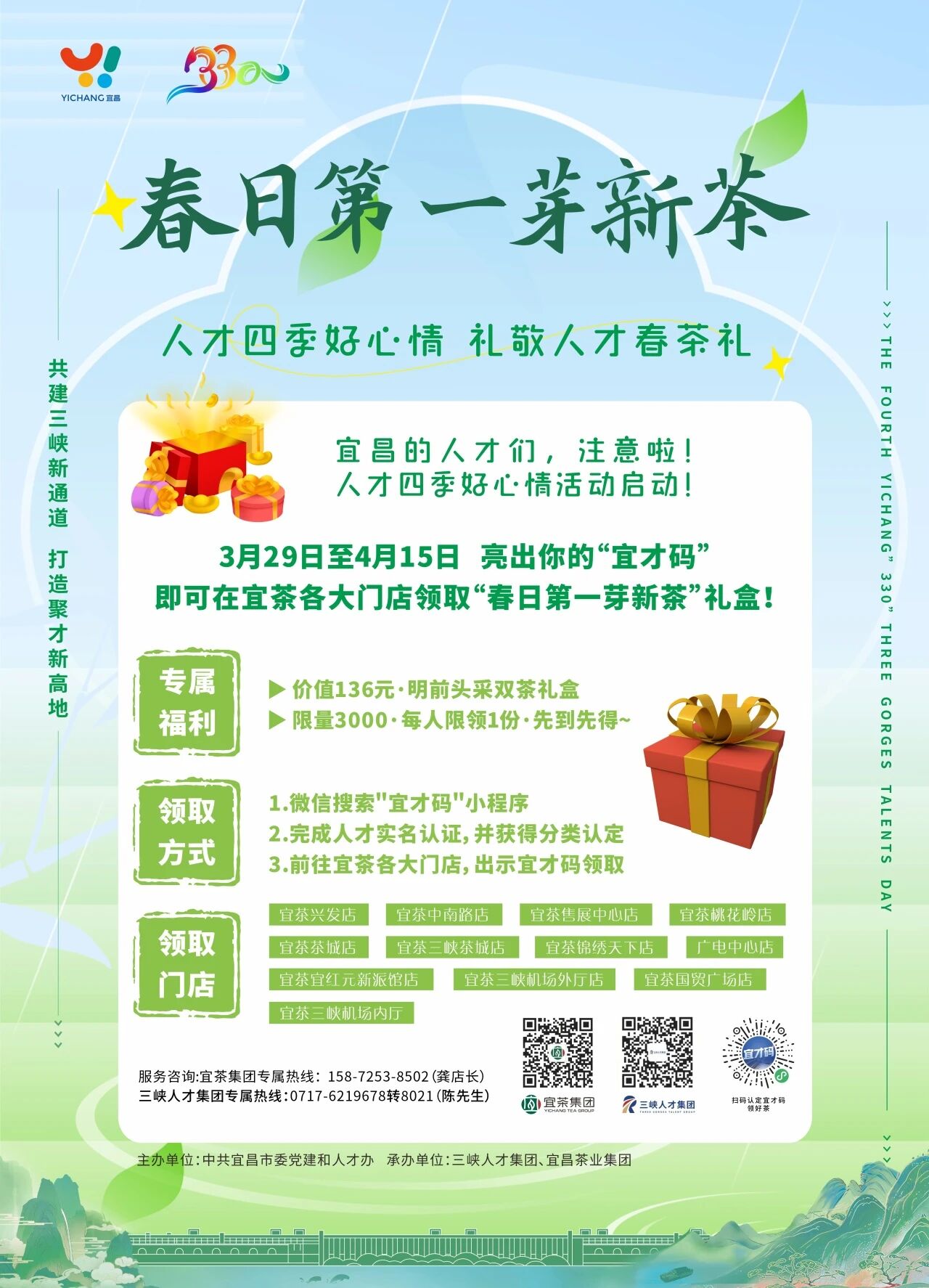 由三峽人才集團(tuán)聯(lián)合宜茶集團(tuán)舉辦的第一季人才四季好心情活動(dòng)正式啟動(dòng)!免費(fèi)福利驚喜來(lái)襲!